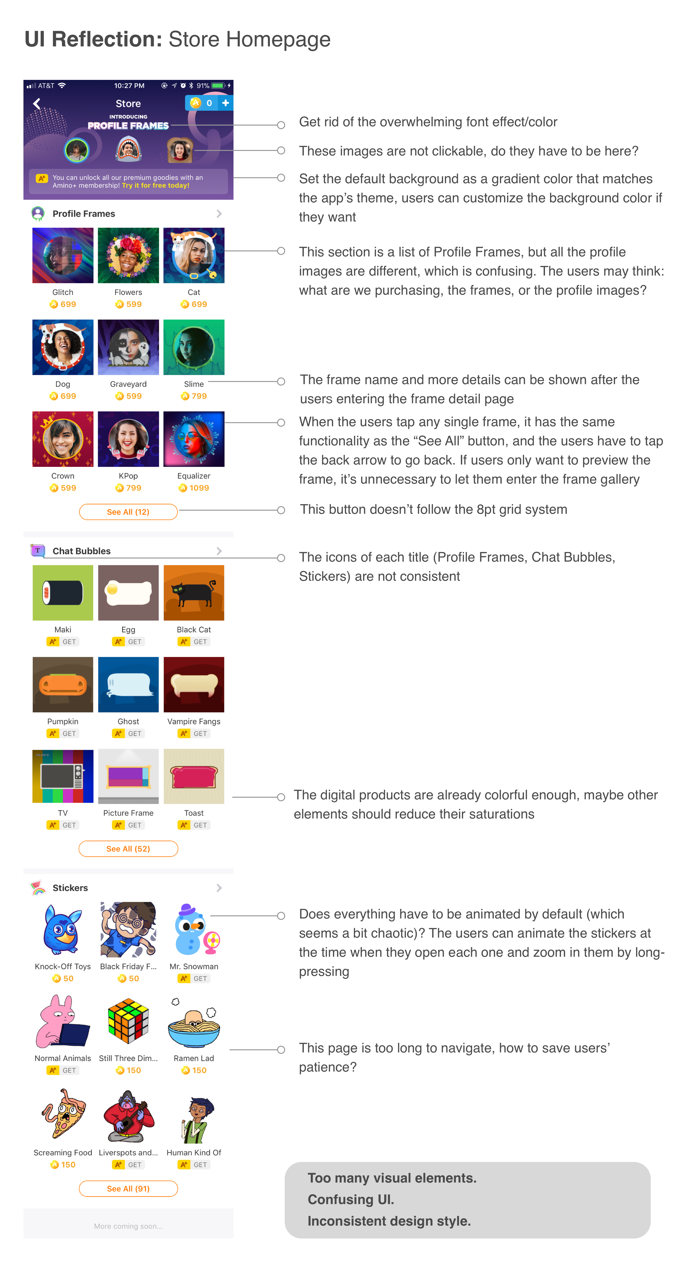 In order to improve the UI of the main Amino store homepage and sticker pack detail view, and provide users a better experience of purchasing digital goods, I conducted this design for the Amino App Store Interface.