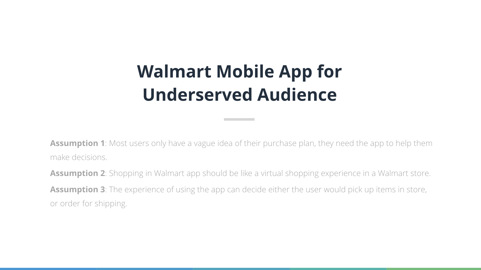 This is an exploration of the opportunities that increase the user experience on Walmart mobile app that would reach an underserved audience today.