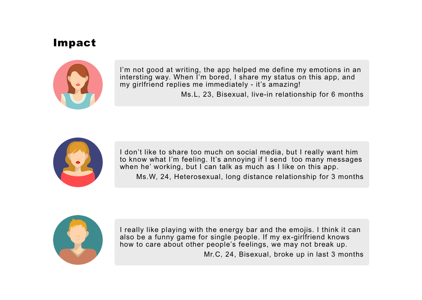Peach is a mobile app which helps people deal with their romantic relationships by tracking fights, reminding important events, and creating a platform for communicating and correcting harmful behaviors.